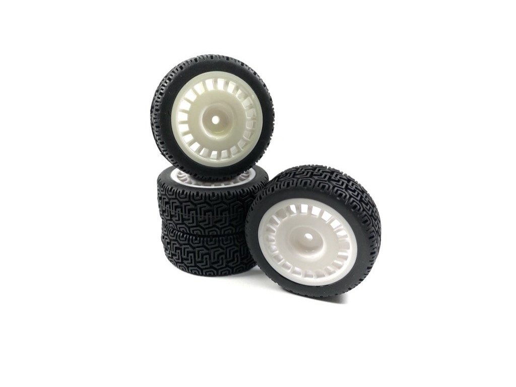 Neumáticos deportivos Rally Winded Design 1:10 con llantas, set de 4, blancos